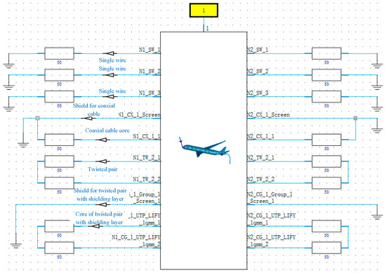 The cables within the aircraft that have different functions are single wires, coaxial wires, and twisted pairs, as shown in Figure 9.