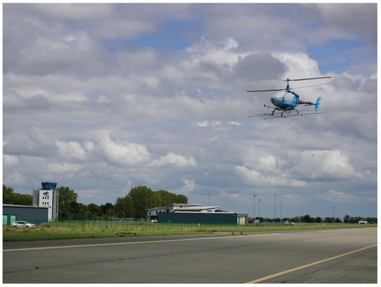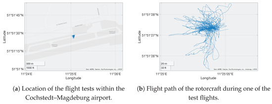 The flight tests took place in the attitude mode flight control law at the national test center for unmanned aircraft at the Magdeburg–Cochstedt airport (EDBC) in Germany. The remote operation of the rotorcraft was possible with limited pilot workload, despite windy days with significant gusts. The rotorcraft with the closed-loop flight controller showed excellent flying qualities. However, it was observed that only a limited section of the operating volume could be used for the flight tests, since the pilots could not safely identify the orientation of the rotorcraft at higher distances. Therefore, a velocity controller is required for more complex maneuvers.