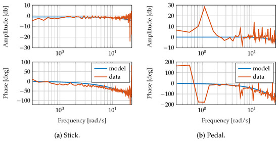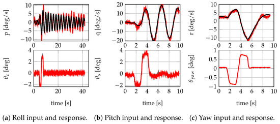- The overall resulting actuator dynamics from flight control law commands to the actual deflections at the swashplate were estimated in Section 5.1. Due to aerodynamic loads on the full-size rotorcraft, the actuator dynamics were slower than those of smaller UAVs. Such in-flight actuator tests were, therefore, essential to identify the correct actuator dynamics to be used in flight control law design.