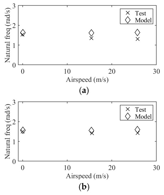 This phenomenon occurs because the gross weight of the HSLS is distributed between the helicopter and the load when carrying a slung load. As the helicopter becomes lighter while being connected to a heavy slung load, its lateral motions are influenced by the lateral swing motions of the load ( and ). As shown in Figure 10b, , , have the same phase, resulting in a decrease in the amplitude of helicopter lateral motions and an increase in load lateral swing motions. This indicates that the helicopter’s lateral motions are strongly coupled with the load’s lateral swing motion, eventually exhibiting synchronized motion in the Dutch roll mode.