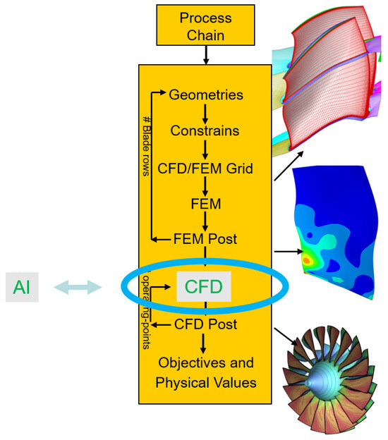 Figure 1 illustrates how CFD results from previous optimizations are collected and then used to train the AI (middle column) for the support of the next upcoming optimization.