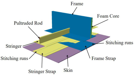 - Horton, B.; Song, Y.; Bayandor, J. Numerical investigation of stringer-frame intersections for stitched aerospace structures. In Proceedings of the 2018 AIAA/ASCE/AHS/ASC Structures, Structural Dynamics, and Materials Conference, Kissimmee, KL, USA, 8–12 January 2018; p. 0230. [Google Scholar]