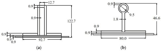 Dimensions of the frame and stringer structure. (a) Dimensions of the frame structure in mm. (b) Dimensions of the stringer structure size in mm.