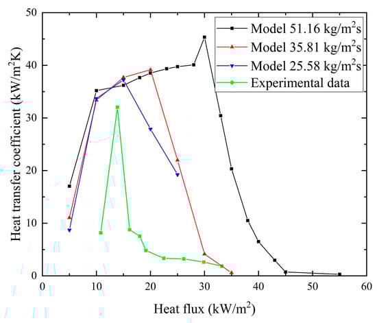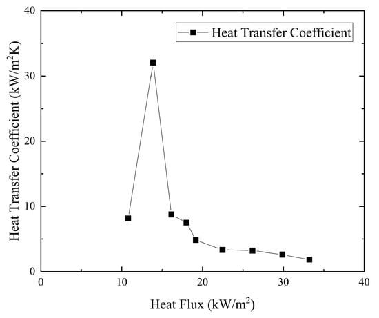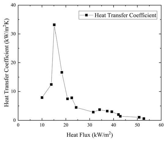 3.4.3. Heat Transfer Coefficient in the Long-Side Wall Dryout Zone