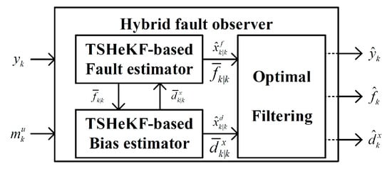 In this section, the traditional TSKF-based fault estimation ideas are briefly described. Meanwhile, the TSKF is extended to the TSHeKF to provide optimal fault estimation of fault considered multi-source uncertainty. Moreover, by adding quantification of , the HFO is established on the basis of the TSHeKF, and the conservativeness-reduced fault estimation is achieved.