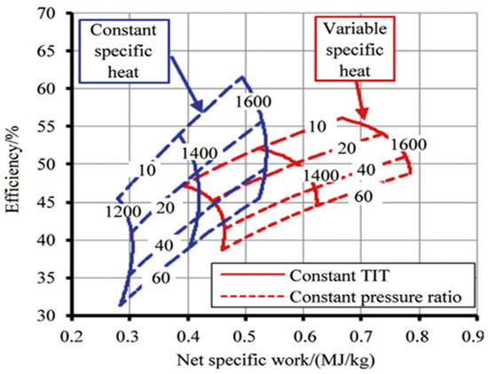 - The working fluid is modeled as a “half-ideal gas” using Variable Specific Heat (VSH).