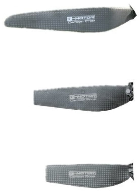 In the final series of automated flights, we shortened the same previously damaged propeller by another 20 mm, resulting in a total shortening length of 35 mm (Figure 3). Our purpose was to understand how gradual propeller damage affects the drone’s stability, maneuverability, and performance.