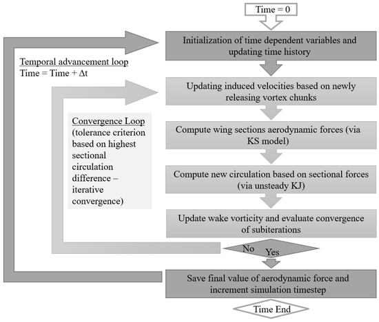 At this point, time is increased, wake is convected downstream and a new timestep can begin its loop (see the graphical description of the iterative process in Figure 1).