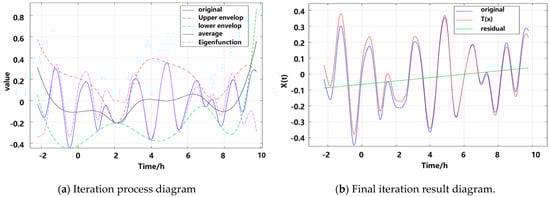 Figure 8 shows the performance of TE extraction and extrapolation. As Figure 8 shows, based on the original data , the intrinsic function is obtained through multiple iterations, as depicted in Figure 7. Finally, the TE is derived according to . The final TE is specifically shown in Figure 8b.
