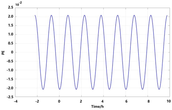 Figure 9 shows the values of the PE obtained through the FFT and spectral analysis. It can be observed that PE has a period of 1.517 h and an amplitude of 0.02. This indicates that while a PE exists in , its overall impact on the values is minimal.