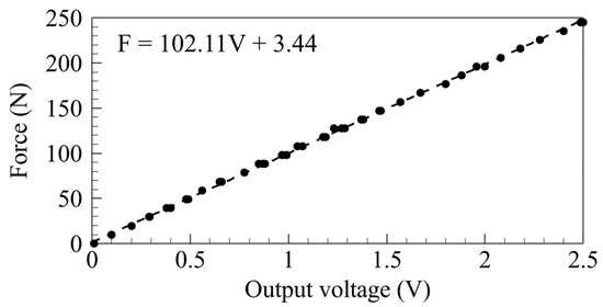Prior to the combustion experiments, load cell calibration was precisely carried out using precision weights. The voltage output from the amplifier, along with corresponding weight values, was recorded to ensure accuracy. Zero balance and span were carefully adjusted, and the resulting calibration data, as shown in Figure 6, were used to derive an equation for converting voltage readings into force measurements.