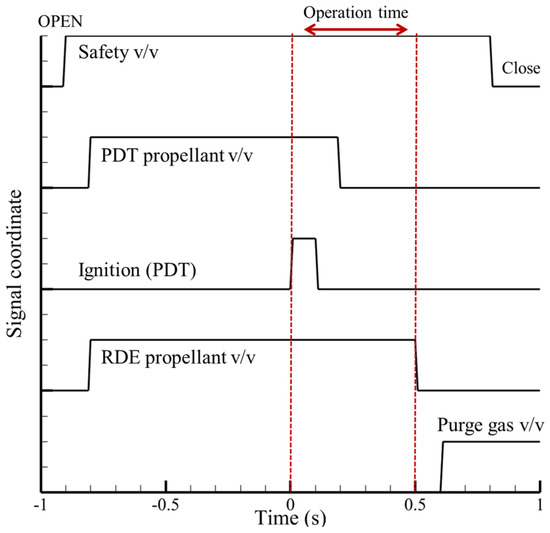 Experimental sequence of the RDE hot fire test: time sequence of each valve and ignition.