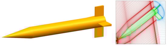 - Abate, G.; Cook, T. Analysis of Missile Configurations with Wrap-around Fins Using Computational Fluid Dynamics. In Flight Simulation and Technologies; American Institute of Aeronautics and Astronautics: Reston, VA, USA, 1993. [Google Scholar] [CrossRef]