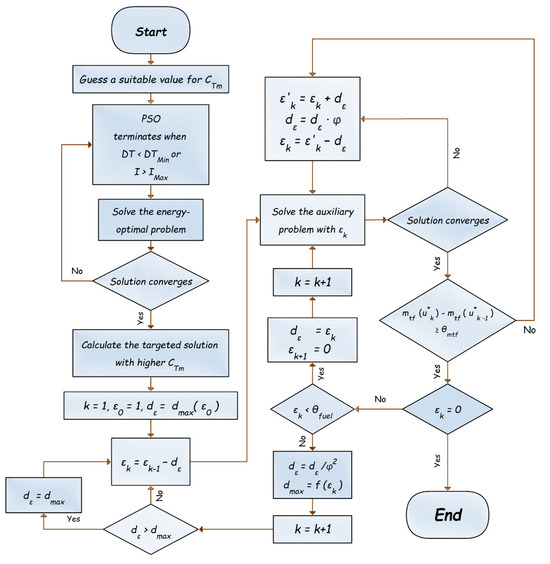 When the homotopic parameter falls below a certain threshold, the iteration step size can be adjusted to be equal with and is set to 0. In other words, the subsequent iteration attempts to solve the fuel optimization problem. This threshold value can be set to .