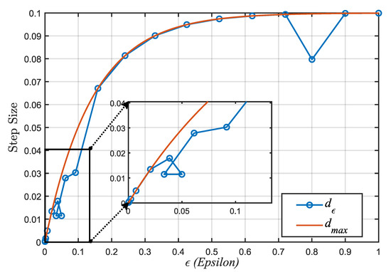 Relationship between maximum iteration step size and .