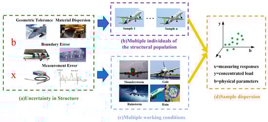 Structures of similar design are considered as a population, where parameter variations in geometry, materials, and boundary conditions cause variable responses under identical loads, appearing as scatter points (Figure 1). Additionally, experimental measurements introduce errors.