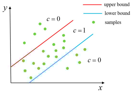 where is the number of samples and and represent the lower and upper bounds of the i-th prediction interval. If the i-th prediction interval encloses the corresponding sample value, then ; otherwise, as shown in Figure 5. The PICP value of the identified interval is closely related to the interval width. When using the PICP metric to evaluate the quality of the prediction interval, it is evident that high-quality intervals can be easily obtained by simply widening the interval. However, overly wide prediction intervals have limited practical value and may not meet engineering requirements.