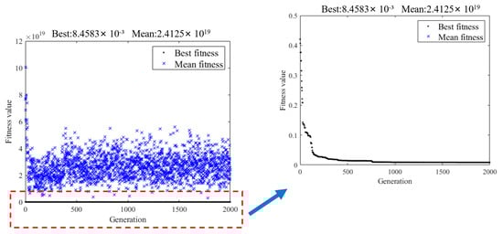 Given the advantages of GA in discovering optimal solutions, avoiding local optima, and ensuring convergence, it is chosen for network optimization. Let the interval weight matrix be and the threshold vector be . The optimization goal for the INN is to determine the optimal network such that the value of its loss function CMSC is minimized.
