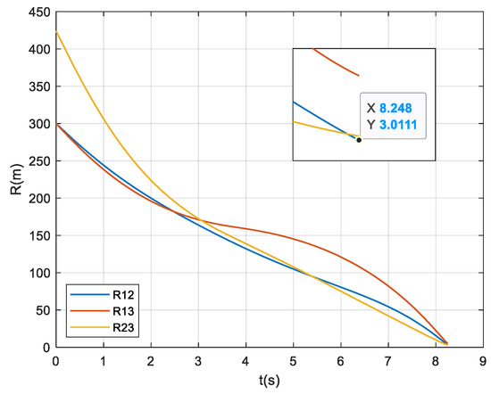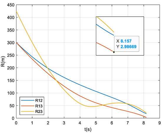 where s denotes the index of an arbitrary collision, and the first and the second subscripts of the sth collision, respectively, both and can denote the sth collision. The collision set will vary with the tendency of inter-missile motions.