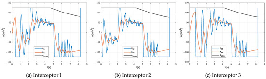 Based on Equations (A25), (A27) and (A28), the interceptor optimal control is derived as