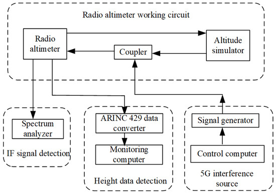 Countries worldwide are currently assigning mid-band spectrum resources to facilitate the advancement of fifth-generation (5G) mobile communication systems. Some of these frequency bands are in close proximity to the operational frequency band (4200 MHz–4400 MHz) of the radio altimeter (RA) [1]. The RA is the only sensor utilized in civil aviation aircraft to measure the distance between the aircraft and the ground during the takeoff, approach, and landing phases. It not only provides pilots with accurate altitude information but also provides a key information input for systems such as the Instrument Landing System (ILS) and the Terrain Awareness and Warning System (TAWS) [2]. If an error in the output of the flight altitude triggers a series of abnormalities in the onboard systems, it could lead to catastrophic events during the high-risk phase of aircraft landing. Due to the low power level of the echo signals received by the RA receiver, typically on the order of 0.001 mW, the RA receiver is highly sensitive and susceptible to interference from adjacent band 5G signals. Given the 25- to 30-year service life of civil aircraft, many currently operational planes are equipped with outdated RA receivers that lack adequate electromagnetic shielding [3]. With the extensive deployment and use of 5G mobile communication systems, RAs are facing the issue of interference from 5G base stations, which poses a potential threat to flight safety [4]. Therefore, it is crucial to conduct research on the electromagnetic susceptibility of RAs to 5G signals to enhance their compatibility and ensure the safety and reliability of civil aviation.