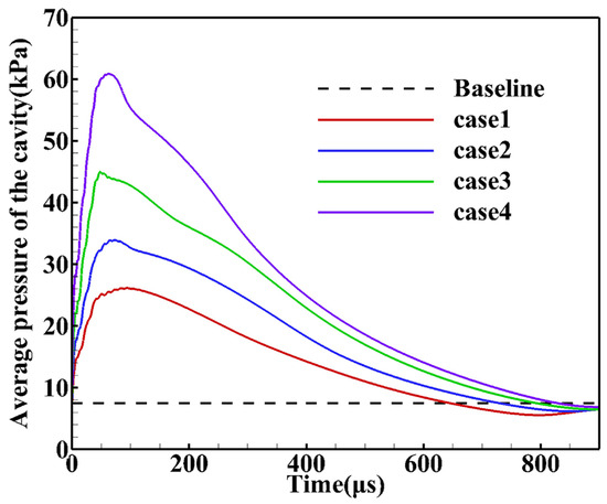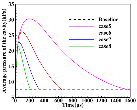 From Figure 19, it can be seen that as the nozzle diameter increases, the maximum average pressure achievable in the cavity decreases, the rate of pressure drop increases, and the time required to recover to the reference value decreases. This indicates that the period of PSJ, that is, the control time, becomes shorter.