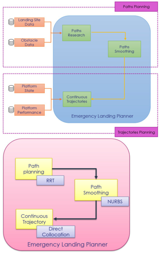 Given the intricacy of the task, current methods often concentrate on a single aspect of the problem, be it the multiple of the trajectories [10], the smoothing of the trajectory [11], the computation of an optimal route [12], the calculation of a dynamic optimal trajectory [13], etc. The cornerstone of these planning-based methods is trajectory planning, i.e., generating a trajectory for a given scenario [14,15]. However, their applicability must still be completed in a highly interactive environment, such as in emergencies. This research, therefore, focuses on the planning scheme of multiple optimal trajectories, from one start point to one or more landing points, in an emergency scenario, aiming to fill this gap.