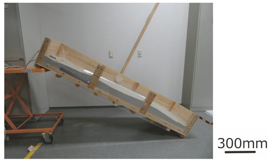 The running test field for silica sand used in this study is shown in Figure 10 [15]. The size of the running test field for silica sand is 1820 mm long, 450 mm wide and 308 mm high; an acrylic panel is attached to the front of the field to allow the operator to view the running conditions from the side. The soil, which was the same silica sand as described in ‘2.1 Silica sand and lunar soil simulant used for running test’, was spread to a depth of about 120 mm within the effective running surface. Angle adjustments were made by raising one side of the test field using a hydraulic lift table.
