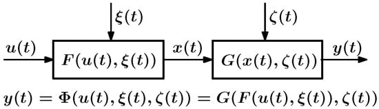 Here, x is the state variable vector, y is the observed output vector, u is the vector of control variables, is the vector of uncontrolled external disturbances, is the vector of measurement errors, and F and G are known vector functions.