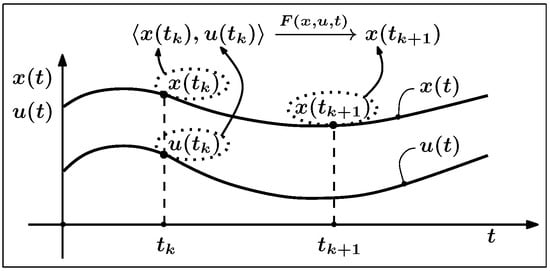The variables and taken at a particular time instant characterize, respectively, the state of the dynamical system and the control actions on it at a given time instant. Each of these variables takes values from the appropriate domain: