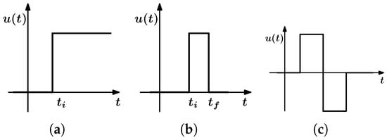 Keeping in mind the definition (1), we can distinguish three kinds of problems related to controlled dynamical systems. In this definition, two of the three elements—, , and —are fixed, and one is free, i.e., it must be found knowing the other two elements. Then these classes of problems look as follows (the free element in them is highlighted in bold):