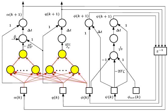 Additionally, the problem of creating an adaptive control system for aircraft behavior is complicated by the fact that it becomes truly effective when working with a nonlinear model of the dynamical system under consideration. As experience shows [2,32], one of the most efficient approaches to solving the modeling problem regarding nonlinear systems is the use of methods and tools of artificial neural networks (ANN). Neural network modeling allows for the building of sufficiently accurate and computationally efficient ANN models. This approach can be considered as some alternative to methods of modeling dynamical systems based on the use of differential equations. It provides, among other things, the possibility of obtaining adaptive models. At the same time, traditional neural network models of controlled dynamical systems, in particular models of NARX and NARMAX classes [2,32,46], which are recurrent neural networks, are the most commonly used for modeling controlled dynamical systems. These models are purely empirical; that is, they are black-box type models. Such models are based solely on experimental data about the behavior of the object. However, in problems of the complexity level typical for aerospace engineering, it is often impossible to achieve the required level of accuracy for this kind of empirical model, which would provide the solution to aircraft motion control problems. In addition, due to the structural organization of such models, they do not allow solving the problem of identification of characteristics of dynamical systems (e.g., aerodynamic characteristics of aircraft), which is a serious disadvantage of this class of models.