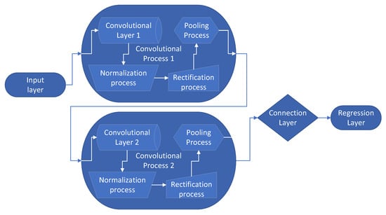 - Convolutional process. Each convolutional process, depicted in Figure 5 as an elliptic box, includes a convolutional layer followed by several processes to improve operational performance: