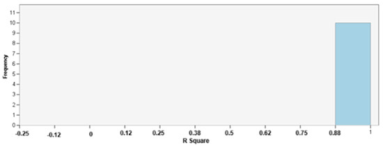 IBM SPSS Statistics is widely recognized as a suitable tool for applying statistical methods and models to time series data, enabling the in-depth analysis and modeling of temporal dependencies and dynamic relationships over time. It provides tools and functionality for time series analysis, including the ability to create VAR models, VECMs, Granger causality tests, and other techniques through the Temporal Causal Model (TCM). The model enables the selection of several predictor variables that the program will print, based on the best fit of the model. This means that the predictors that have the best ability to predict the target variables are selected for display in the results. This is often achieved by comparing different models based on the value of the coefficient of determination R2 (R square). Figure 3 shows a histogram of overall model quality. On the histogram shown, the value of R2 is very high (higher than 0.88), which indicates a very good model fit.