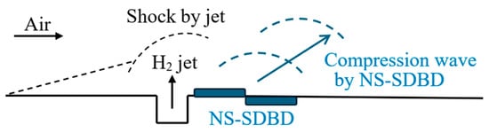Schematic diagram of the pulsed H2 jet and NS-SDBD combined flow control scheme.