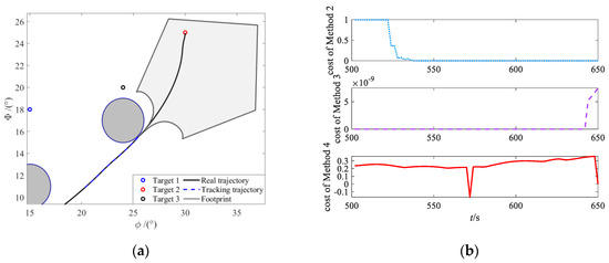 When , the intent to attack is at the back of the no-fly zone relative to the vehicle, and the cost of guidance becomes greater no matter which direction the vehicle goes to avoid it. When or , the intention to attack is on the side of the no-fly zone relative to the vehicle, and avoiding the no-fly zone in the direction of the intention to attack will result in a lower guidance cost; otherwise, a higher guidance cost will be incurred.