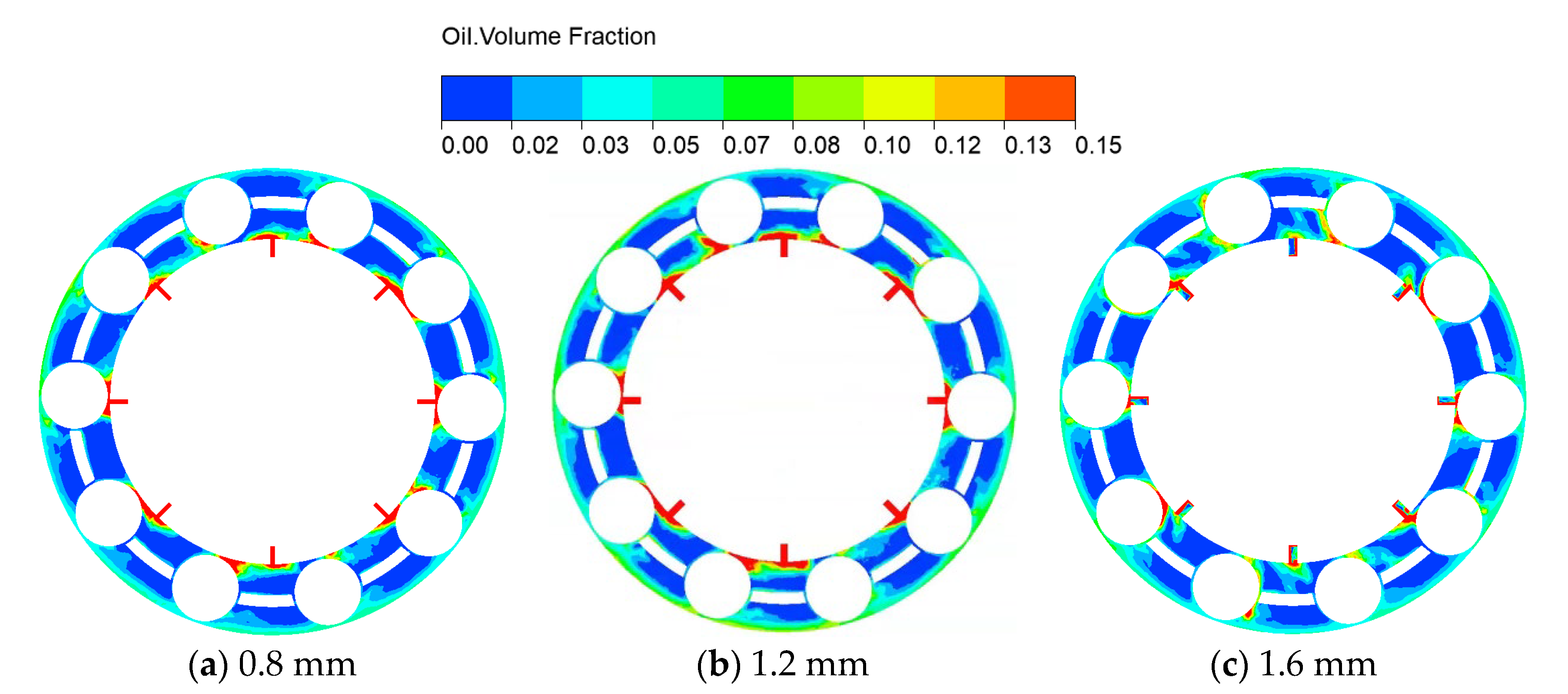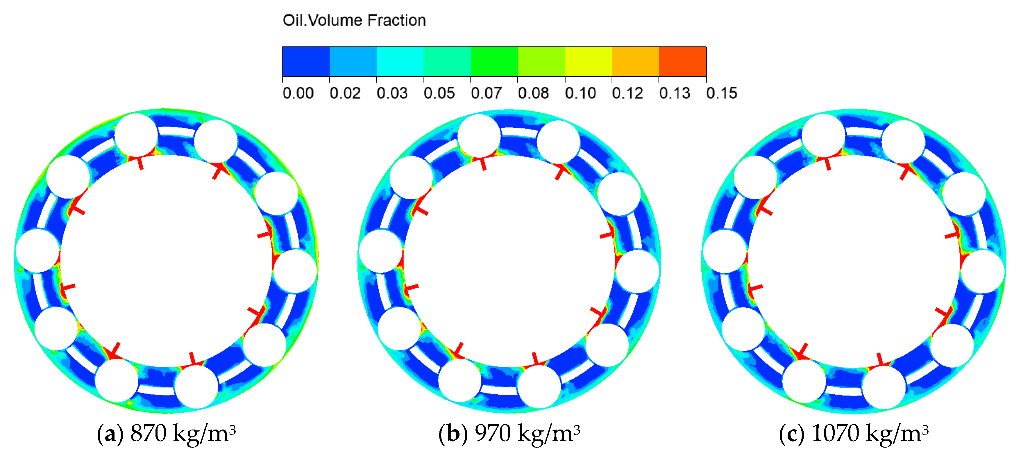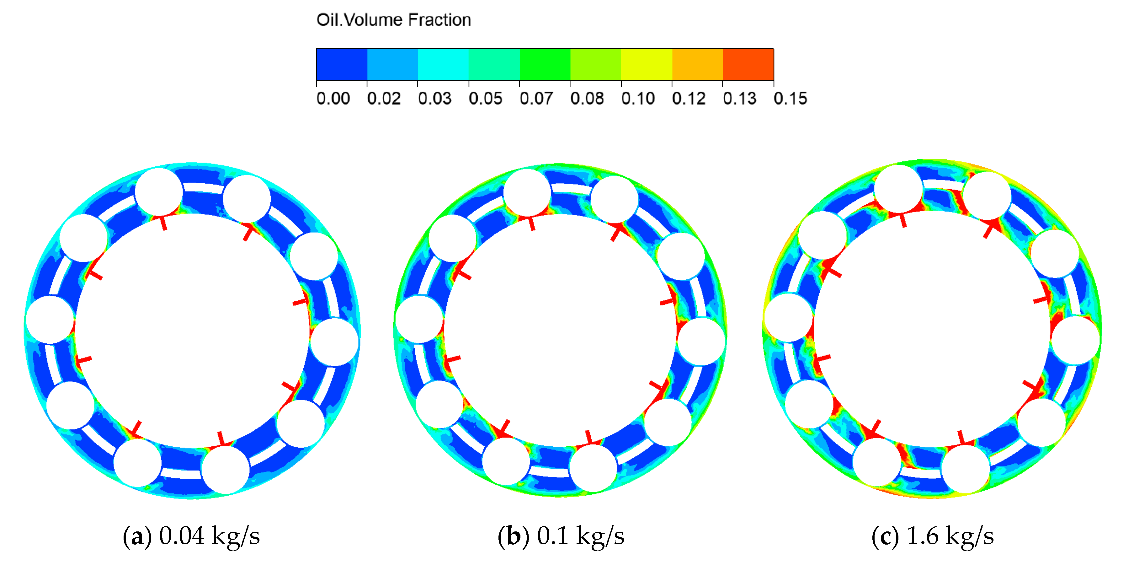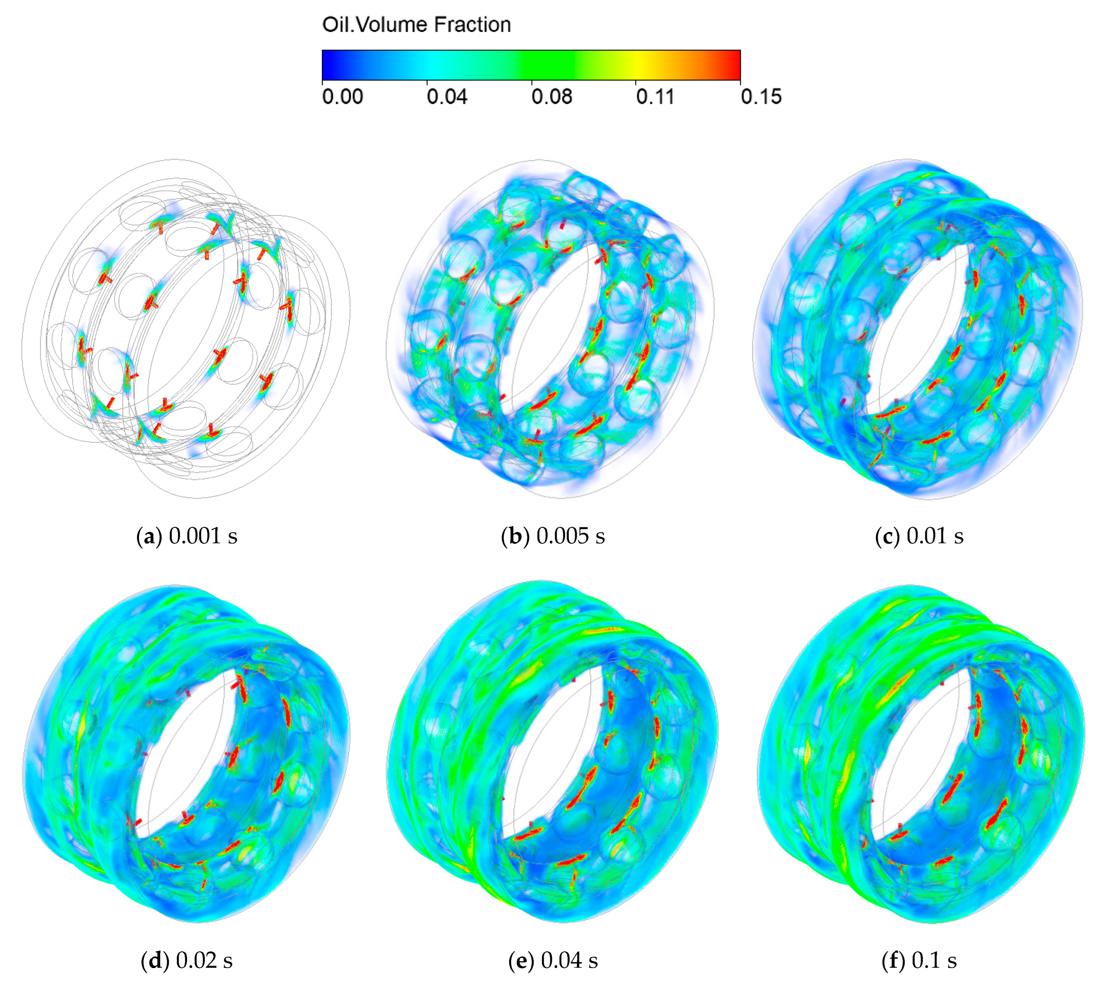 3.1. Dynamic Characteristics of Oil–Air Two-Phase Inside the Bearing