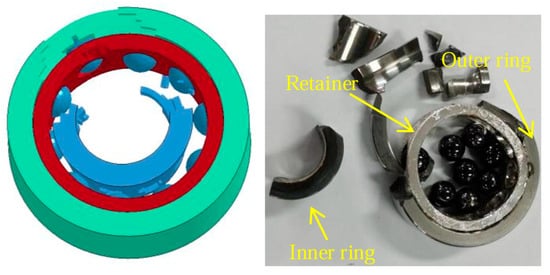 The damage and deformation processes of the bearing near the turbine wheel during the simulation are illustrated in Figure 8. Figure 9 shows that the bearing on the turbine shaft near the turbine wheel bears the main load during the containment process. First, the deformed turbine shaft compresses the inner ring of the bearing, which wears and breaks during impact with the balls. Subsequently, the retainer is broken under the pressure of the deformed turbine shaft and bearing balls. Finally, the outer ring of the bearing is severely damaged under the pressure of the deformed turbine shaft and bearing balls.