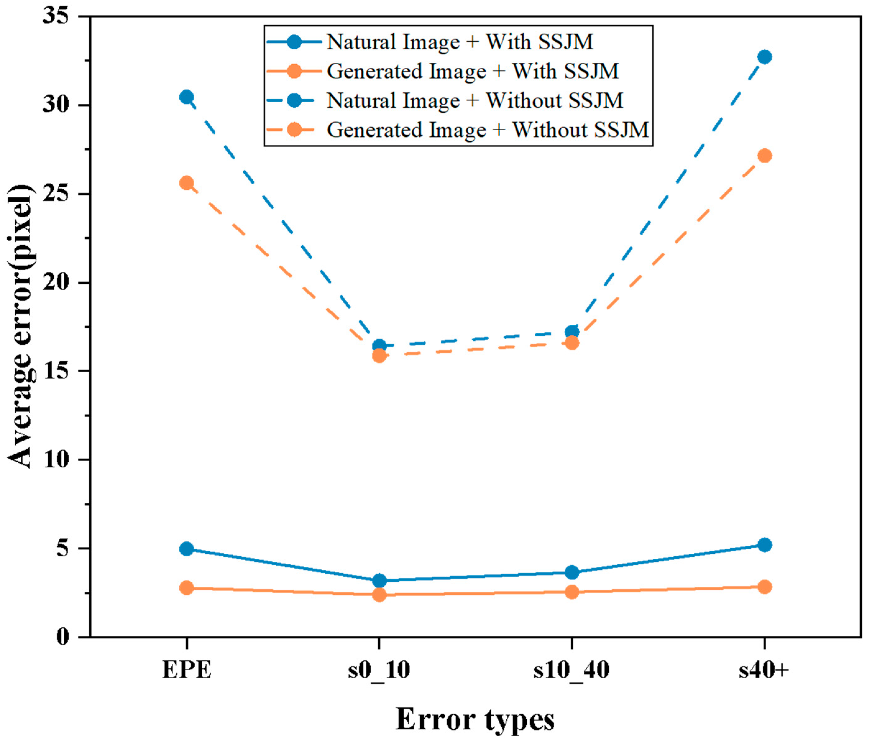 Visualization Results of the Prediction of Projection Deformation Relationships by Each Model. Controlled variable comparisons of visualized optical flow results provide clear insights into the impact of subject image types, the effect of the SSJM module, and the advantages over other models.