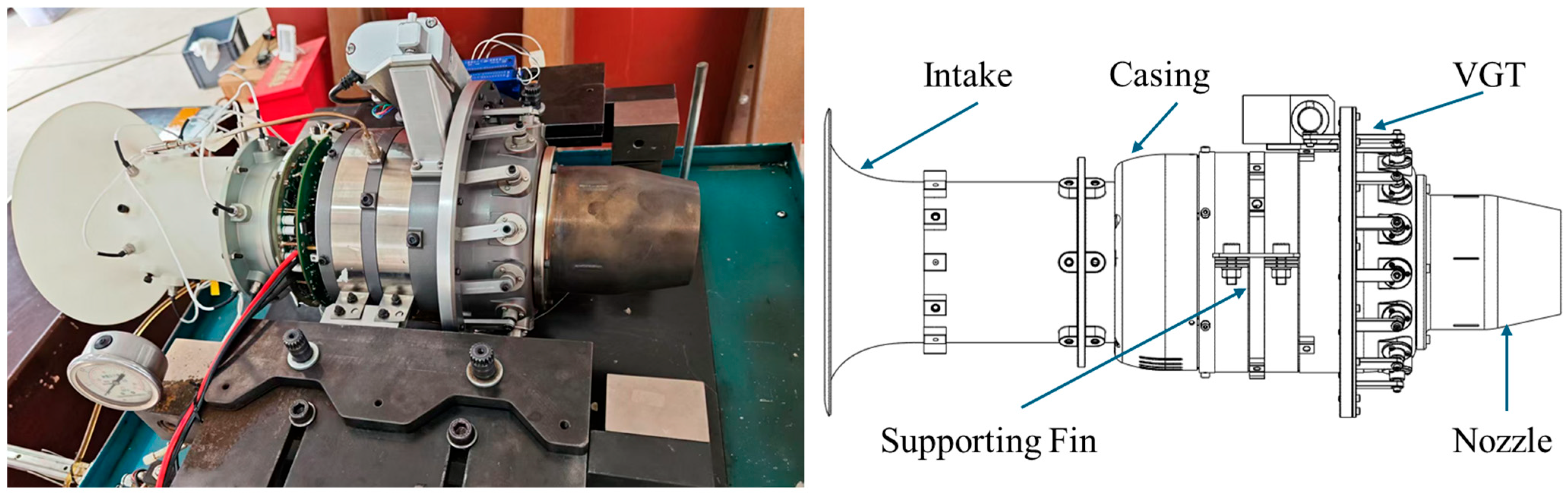 - Zhao, B.; Huang, C.; Zhang, Z.; Cui, W.; Zhou, T. Experimental study on the effects of compressor rotational speed on surge characteristics: Spatial and temporal frequencies. Aerosp. Sci. Technol. 2025, 157, 109854. [Google Scholar] [CrossRef]