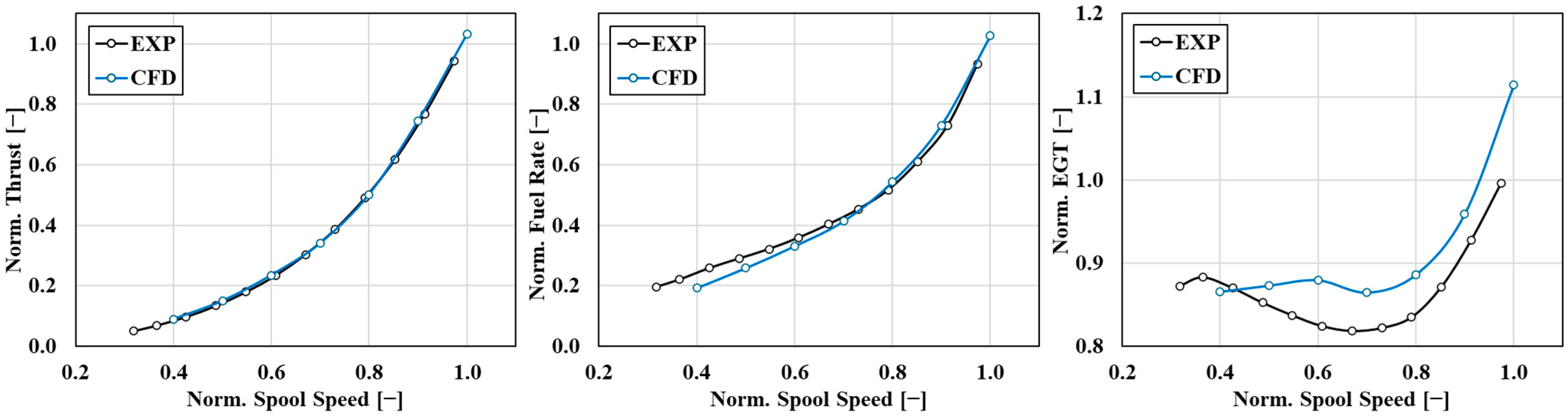 - Romagnosi, L.; Mezine, M.; Baux, Y.; Anker, J.; Claramunt, K.; Hirsch, C. A Methodology for Fully-Coupled CFD Engine Simulations, Applied to a Micro Gas Turbine Engine. In Proceedings of the ASME Turbo Expo 2018: Turbomachinery Technical Conference and Exposition, Oslo, Norway, 11–15 June 2018; Volume 2C: Turbomachinery, Paper V02CT42A047. [Google Scholar] [CrossRef]