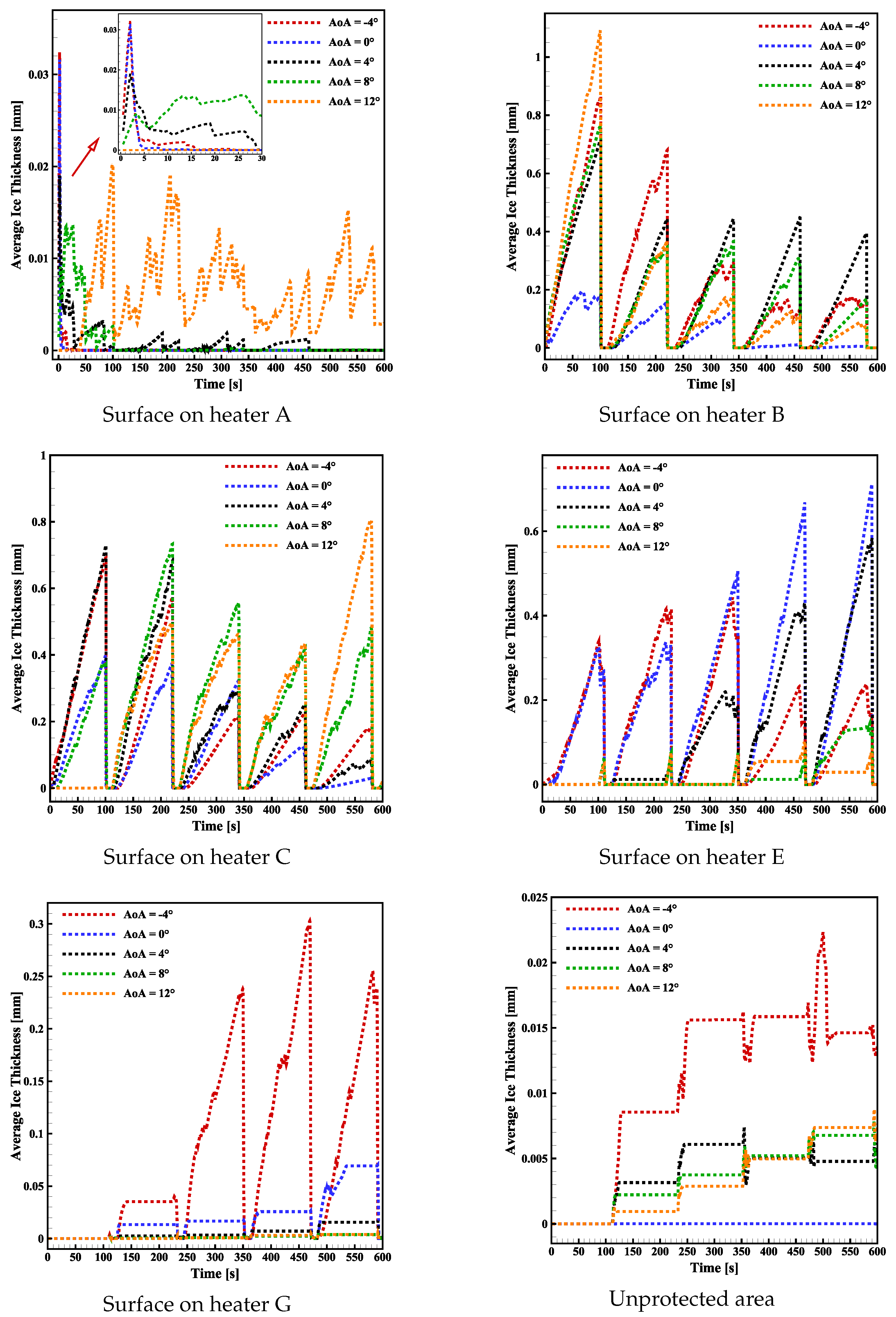 3.4. Analysis of Electro-Thermal De-Icing System at Various Angles of Attack