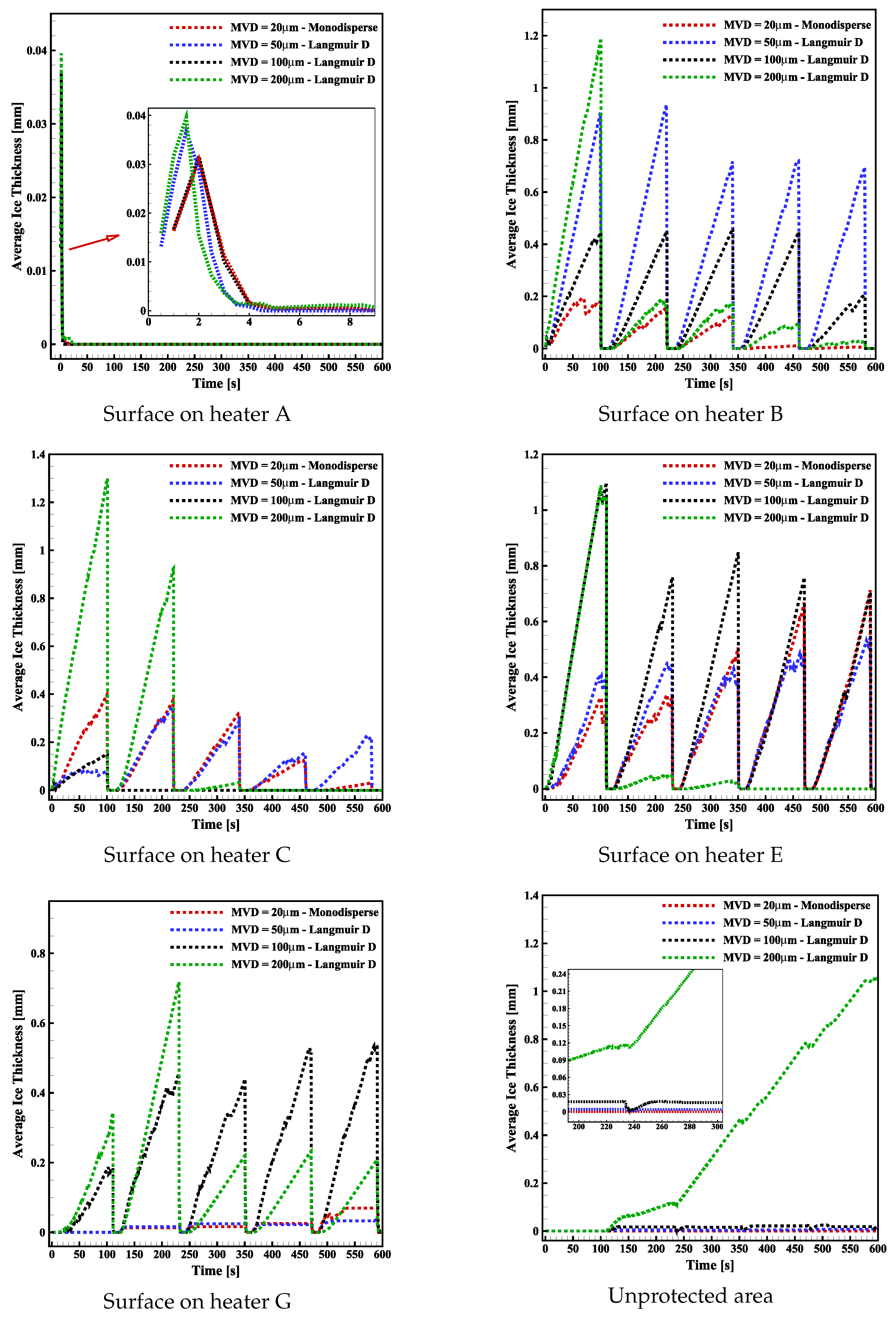 3.5. Analysis of Electro-Thermal De-Icing System in Harsh SLD Condition