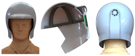 - Salvino, C.; Altshuler, K.; Beatty, P.; DeJarnette, D.; Ybanez, J.; Obana, H.; Osabel, E.; Dummer, A.; Lutz, E.; Momayez, M. Defying Lunar Dust: A Revolutionary Helmet Design to Safeguard Astronauts’ Health in Long-Term Lunar Habitats. In Proceedings of the AIAA ASCENT Conference, Las Vegas, NV, USA, 22–24 July 2025. [Google Scholar]