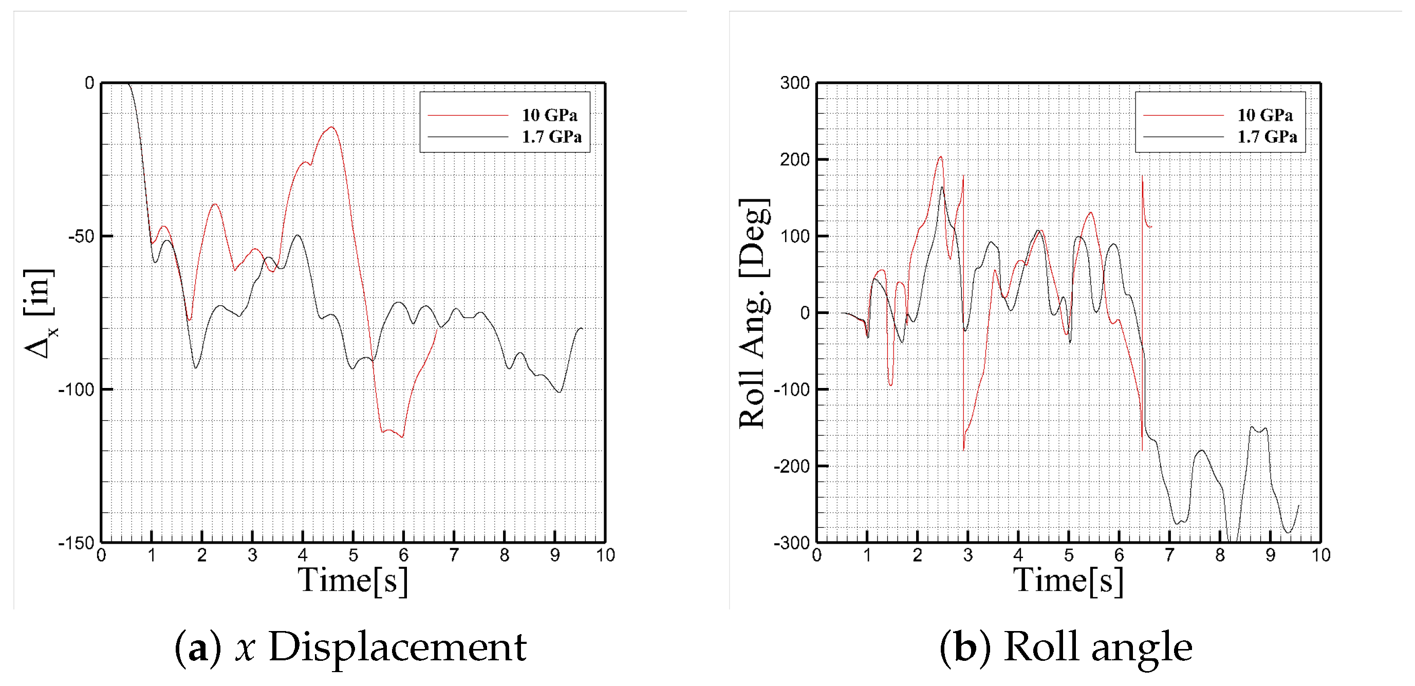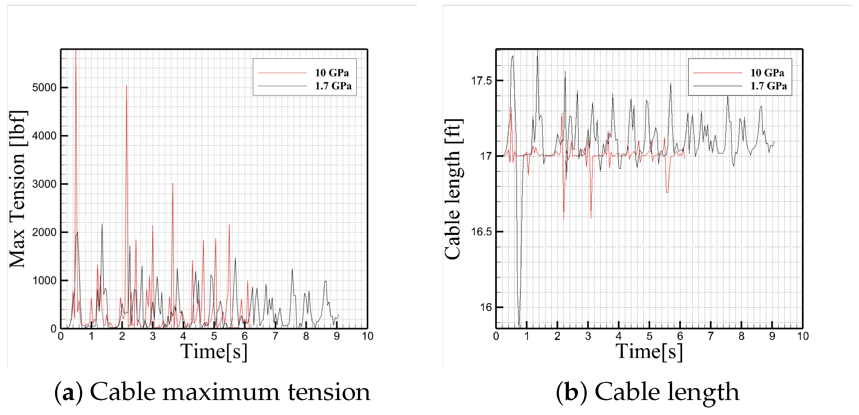 Two values of the cable’s Young’s modulus were tested to assess sensitivity to cable stiffness: 10 GPa and 1.7 GPa.
