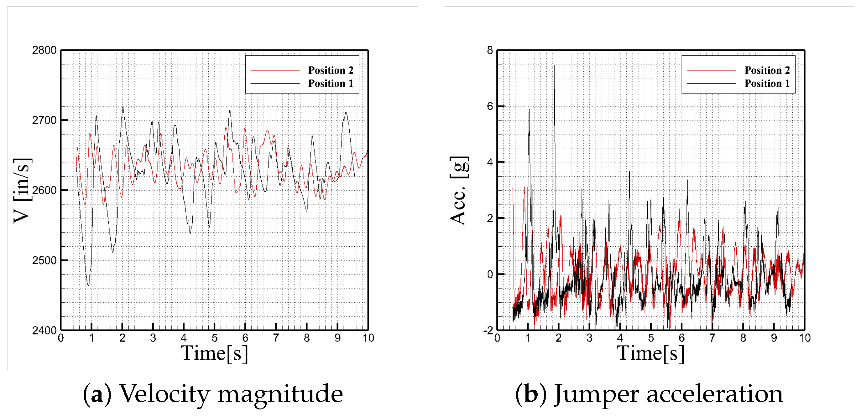 These results emphasize the importance of carefully selecting jumper initial conditions for physically representative modeling. The refined position minimizes nonphysical transients, better reflects realistic jumper exit trajectories, and reduces both structural loading and numerical oscillations in early simulation phases.