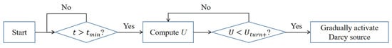 are satisfied, the Darcy momentum source is gradually activated and remains on for the remainder of the simulation. Here,