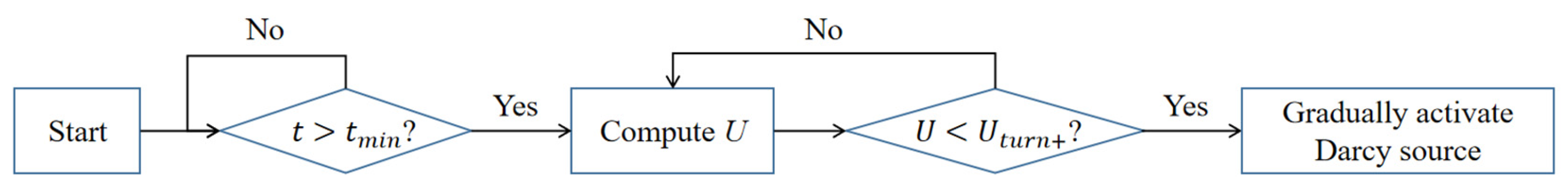 In addition, the velocity-gated strategy introduces negligible computational overhead, since the additional cost is only a simple conditional check. More importantly, by delaying the activation of the Darcy damping until after the initial high-velocity spreading stage, the solver avoids excessive resistance when velocities change rapidly. This helps maintain numerical stability in the most dynamic phase, so convergence is generally improved and the overall simulation is completed faster.
