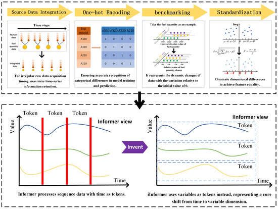 Moreover, One-Hot Encoding completely retains the aircraft type category information, with each aircraft type corresponding to a unique encoding vector. This ensures that the model can accurately identify differences between aircraft types during both training and prediction phases. Combined with the iInformer model’s ability to learn from long time-series data, it can fully utilize the fuel quantity variation data of different aircraft types under long time series, providing comprehensive and accurate feature inputs for fuel quantity prediction in multi-aircraft type scenarios.
