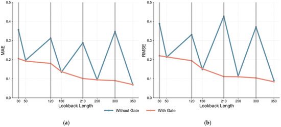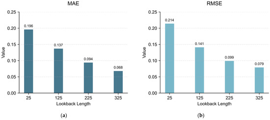 Impact of lookback length on error metrics (a) MAE; (b) RMSE.